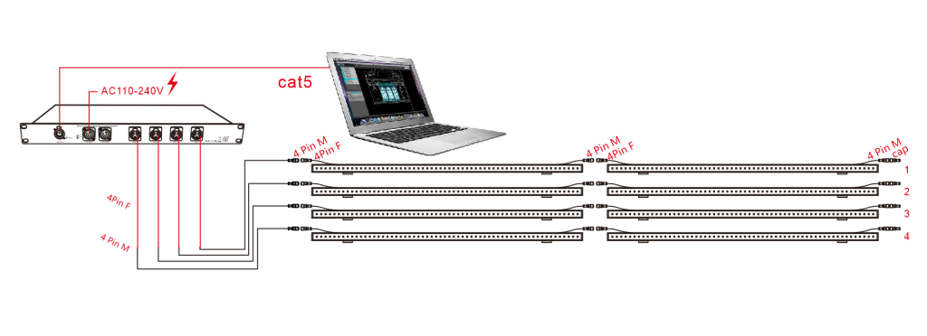 - 兼容各种DMX灯光,包括摇头灯,帕灯,
